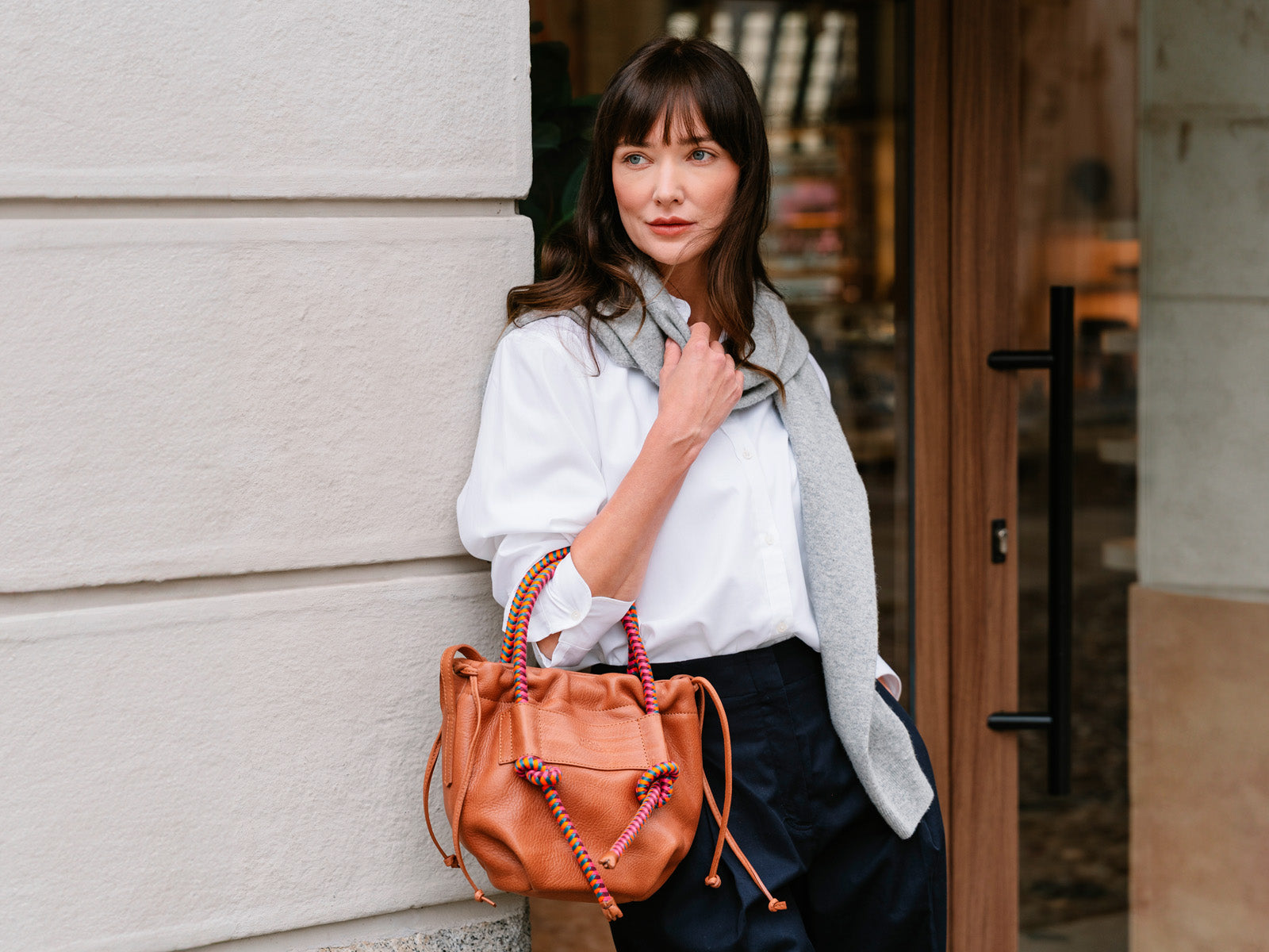 Bolso tipo crossbody de cuero vacuno curtido vegetal y teñido con anilinas.