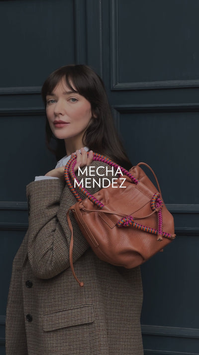 Bolso tipo crossbody de cuero vacuno curtido vegetal y teñido con anilinas.